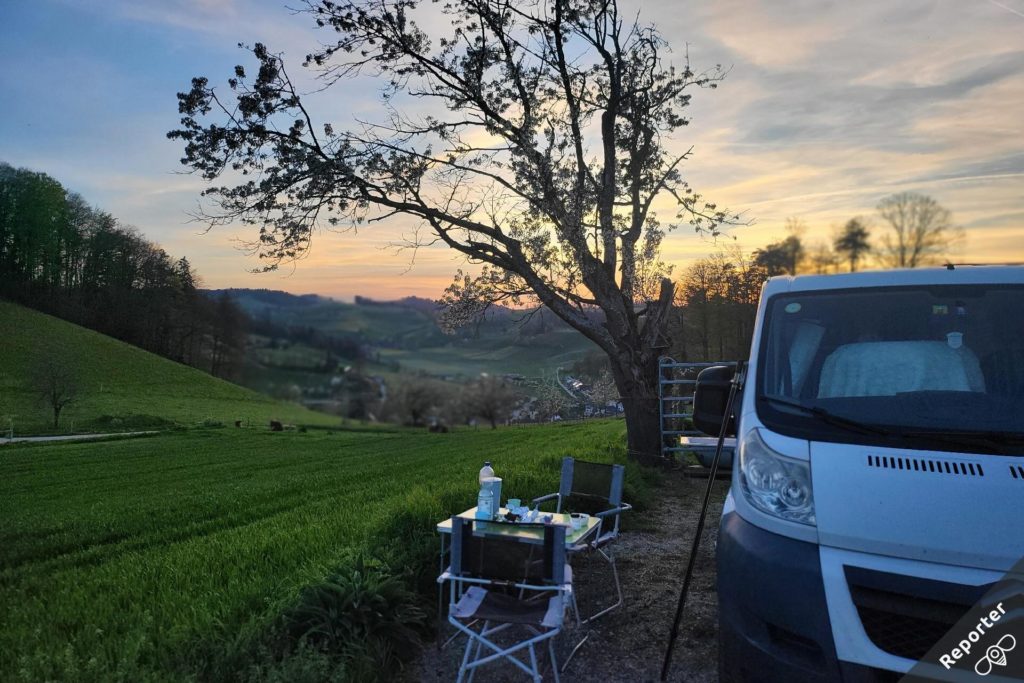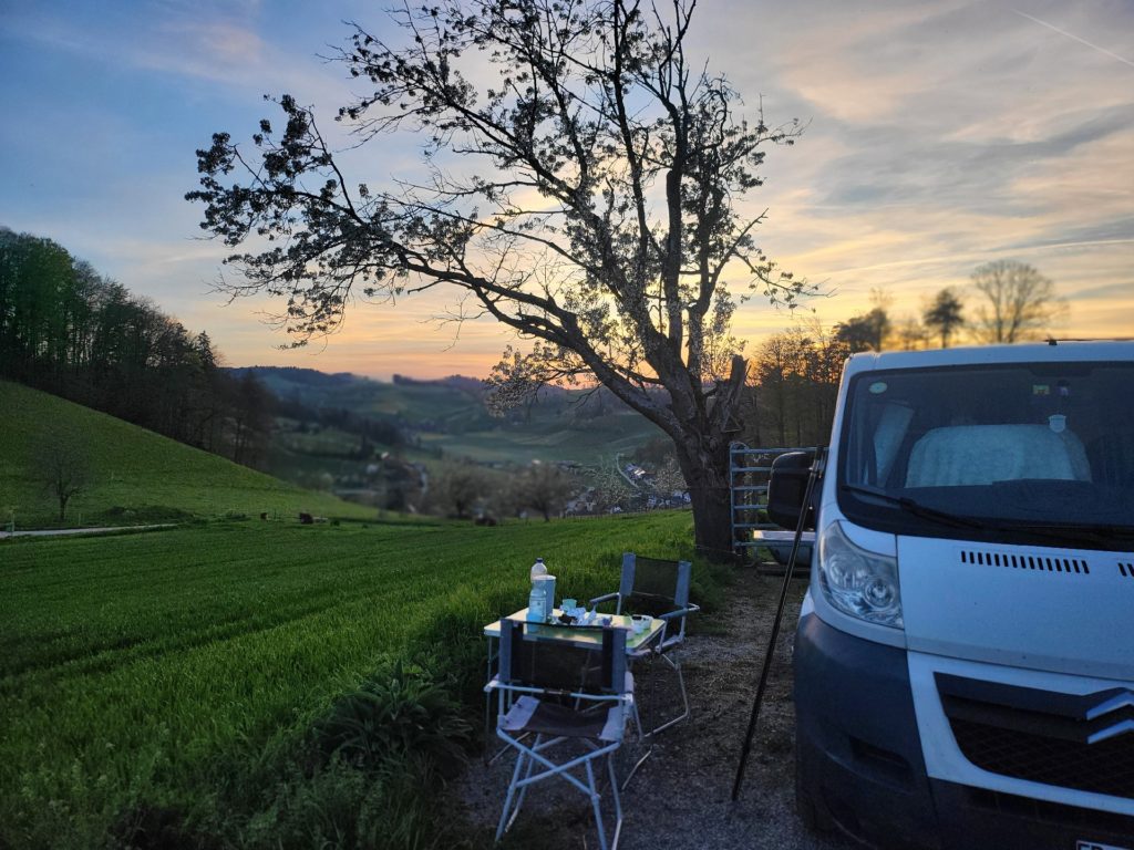 Der Platz war einfach genial (Pure Natur). Mit einem super Sonnenuntergang & -aufgang, welche wir genossen haben. Anja hat uns herzlich begrüsst und uns den Platz gezeigt. Es ist einfach schön hier. Bei der Abfahrt haben wir im Dorfladen eingekauft.