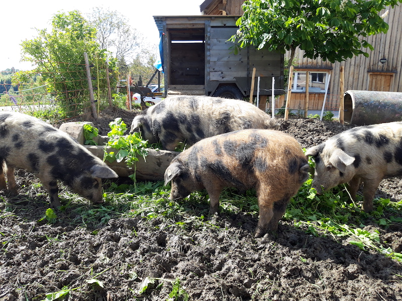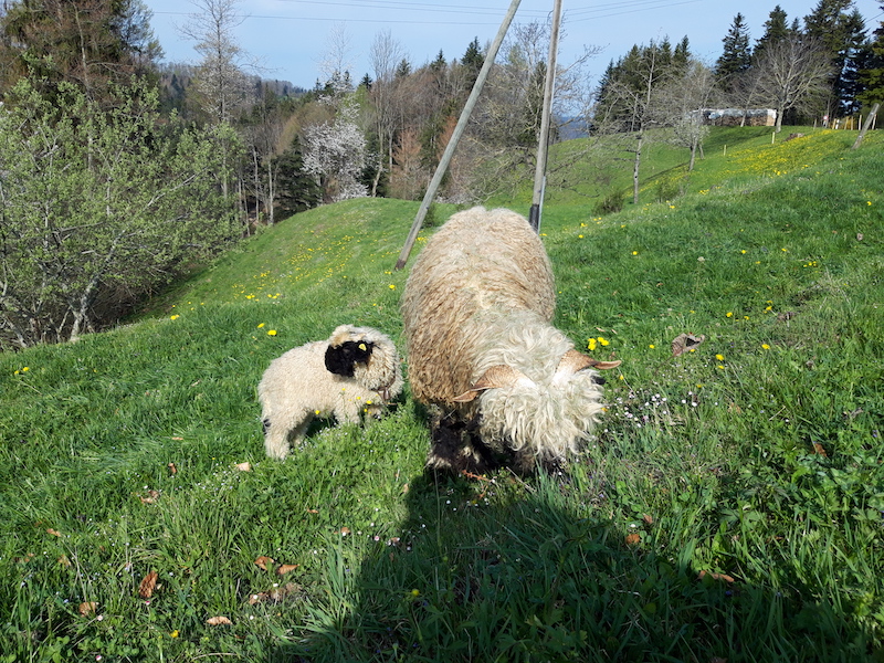 Gerne verführen wir euch in eine eher unbekannte aber wunderschöne Ecke des Kanton Thurgaus, ins waldige Tannzapfenland. Auf kanpp 1000 m. ü. M. und „wo sich Fuchs & Hase gute Nacht sagen“, bieten wir ein idyllisches Plätzchen, mit imposanter Weitsicht (und wenn das Wetter mitmacht mit traumhaften Sonnenuntergängen) und Wander -und Bikerwege gleich vor der Wohnwagen-Tür. Wir sind ein junges, innovatives Paar und führen unseren kleinen Hof mit Schafen, Wollschweinen, Hühnern, Enten, Hasen und Katzen, Nussbäumen und Blumenwiesen im Nebenerwerb, naturnah und mit viel Herzblut.